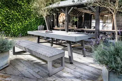 Bringing the fun and entertainment to your garden space, Crucible is a multiuse garden activity table that oozes innovation, has style in abundance and will be the entertainment hub of the garden. Attach the table tennis set for a fun game or two, or remove the table top to reveal the pool table, when dining the equipment is neatly stored away within one of the benches.