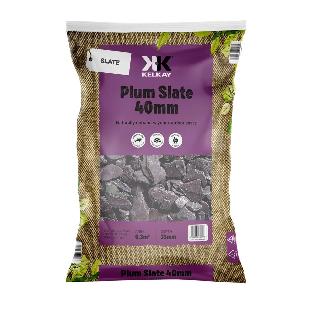 You can buy the Kelkay Plum Slate 40mm online in our webshop or visit our in Wolverhampton, near Walsall, Birmingham, Dudley and Stafford, to buy the Kelkay Plum Slate 40mm or other Decorative Stone and Gravel products. Our garden centre is conveniently located, has free parking and is easy to visit from places like Walsall, Birmingham, Dudley and Stafford. Feel free to visit us to buy Decorative Stone and Gravel products.