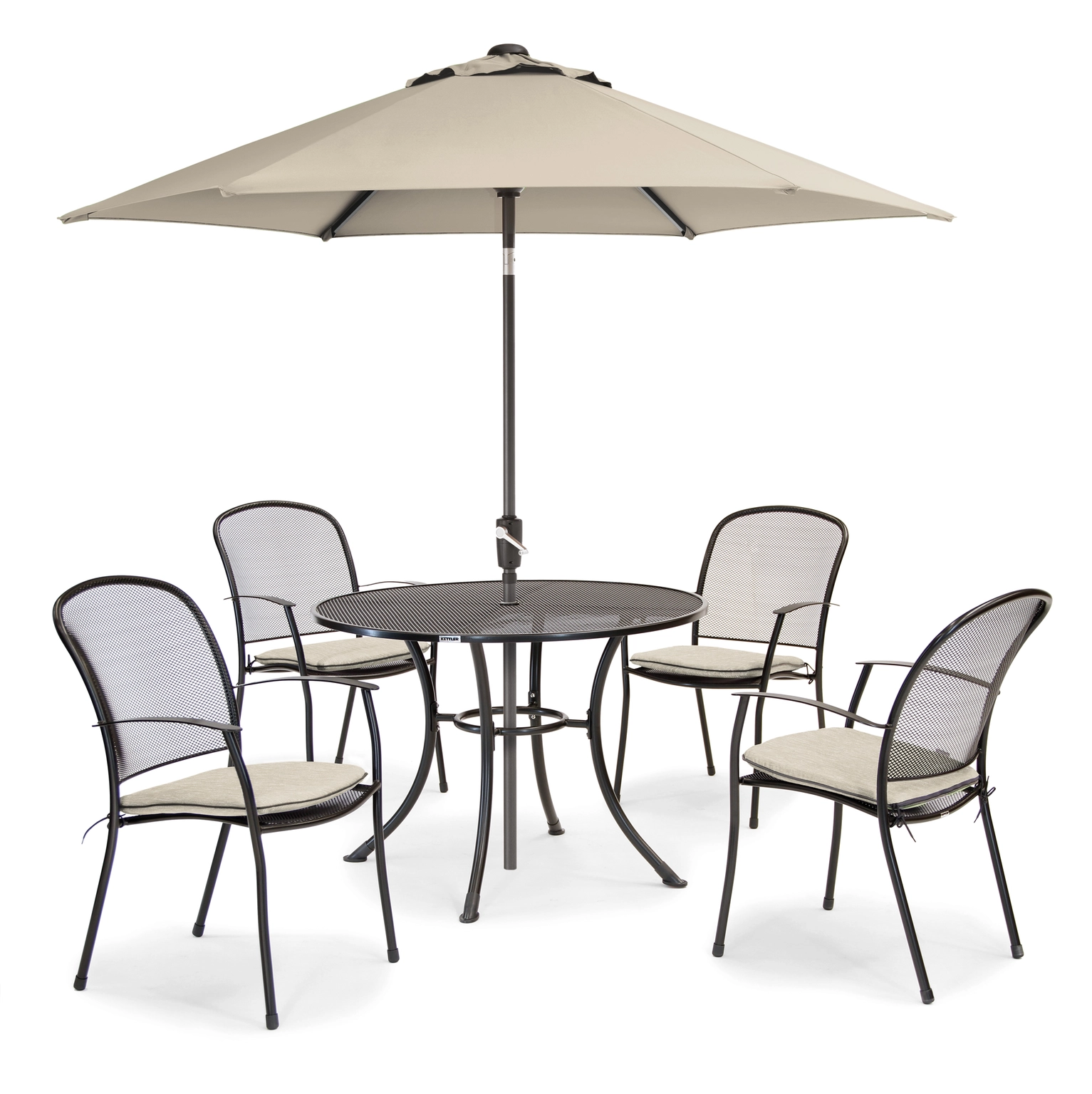 - Kettler Caredo 4 Seater Round Dining Set with Parasol in Slate Check